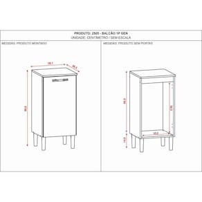 Produto: Balcão Gen | Modelo: Gen | Cor: Freijó/Supremo | Numero De Gavetas: Não Possui Gaveta | Acabamento: Pintura Uv | Necessita De Montagem?: Sim | Incluiu Tampo: Sim | Incluiu Prateleiras: Não | Numero De Portas: 1 | Largura (Cm): | Altura (Cm): 80 | Profundidade (Cm): 36.299999999999997 | Como Será Enviado?: O Produto Será Entregue Desmontado E Não Disponibilizamos O Serviço De Montagem. | Volumes: 1 | Esquema De Montagem: Sim | Garantia: 90 Dias | Vendido Por: Full Móveis | Fabricado Por: KitS Paraná | Tipo de móveis de cozinha: Balcão