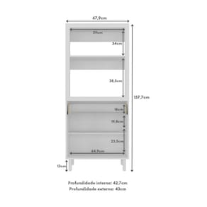 Dimensões do produto montado: Altura: 157,7cm | Largura: 67,9cm | Profundidade: 43cm *Você pode consultar as medidas internas na imagem técnica do produto.