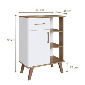 CARACTERÍSTICAS TÉCNICAS: - Estrutura em MDP de 15 mm - Acabamento Fosco na cor Branco e Marrom - Porta com Dobradiças Metálicas - Puxador tipo Alça em Plástico - Pés Fixo em Plástico - Dispõe de 2 Nichos e 1 Prateleira - Suporta até 5 kg na Prateleira