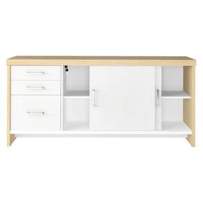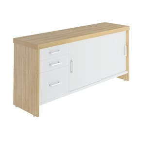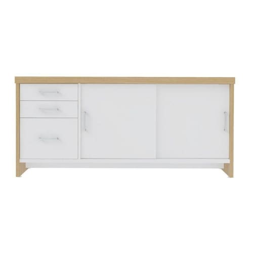 Balcão Multiuso Escritório Com Gavetas e Portas Carvalho/Branco -