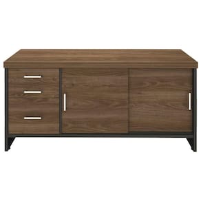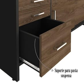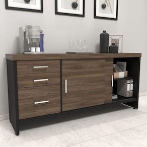 Balcão Multiuso Escritório Com Gavetas e Portas Charuto/Preto -
