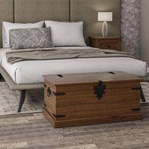 Seu design robusto é complementado por acessórios em ferro fundido com pintura epóxi preta fosca, que conferem sofisticação e reforçam o estilo marcante da Linha Imperial. Além de decorativo, o baú é extremamente funcional, sendo ideal para armazenar objetos, roupas, mantas e diversos itens do dia a dia.