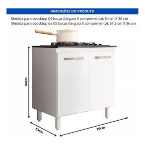 Medida para coocktop 04 bocas (largura X comprimento): 54 cm X 36 cm