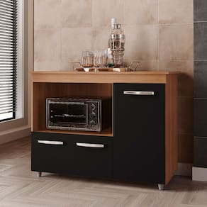 Balcão Multiuso para Forno e Micro-ondas Liza Savana/Preto - Moblis
