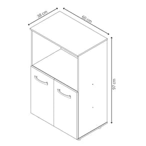 Com medidas de 97 cm (A) x 60 cm (L) x 38 cm (P), o móvel tem pés fixos de 5 cm em plástico resistente. A montagem é simples e acompanha manual. Uma solução versátil para tornar sua cozinha mais organizada e elegante.