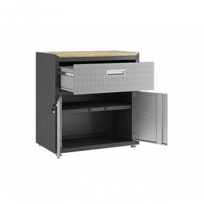 Gabinete com duas portas e uma gaveta, ideal para ser utilizado como bancada de trabalho. Inclui tampo opcional, perfeito como superfície de trabalho adicional. Equipado com puxadores de alumínio para fácil abertura das portas, que também possuem fechadura e chave. As portas são montadas facilmente, utilizando dobradiças pivotantes. Contém prateleira interna ajustável e removível, permitindo adaptação conforme necessidade de armazenamento. Os pés do gabinete possuem sapatas reguláveis, garantindo estabilidade e nivelamento mesmo em superfícies irregulares.