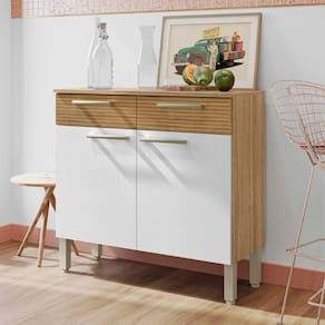 O Balcão possui 2 portas e 2 gavetas destaca-se por sua praticidade e eficiência de uso, podendo ser utilizada como complemento de cozinha.