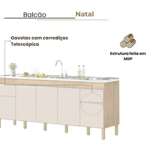 Balcão Natal 5 Portas para pia de 2 mt Amêndoa Off White