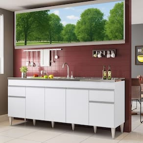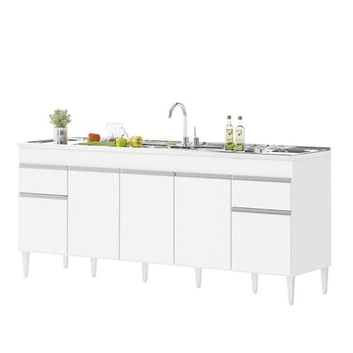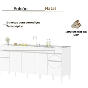 Balcão Natal 5 Portas para pia de 2 mt Branco