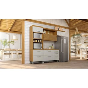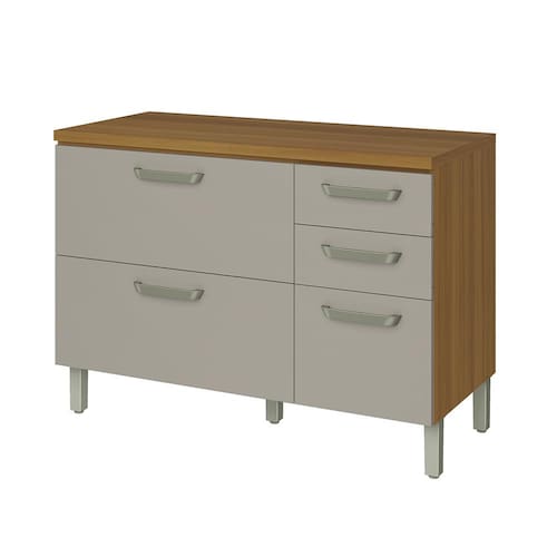 Sofisticação e Versatilidade para sua Cozinha O Balcão Nesher Princesa de 120 cm de largura é a escolha ideal para quem busca um móvel funcional com design elegante. Composto por 2 portas, 3 gavetas e 1 prateleira interna, oferece amplo espaço para organização. Produzido em 100% MDF, possui tampo robusto de 30 mm no padrão amadeirado Freijó, que valoriza o ambiente com um toque natural e moderno. O móvel também conta com pés reguláveis com acabamento pintado, permitindo ajuste ideal para diferentes tipos de piso.