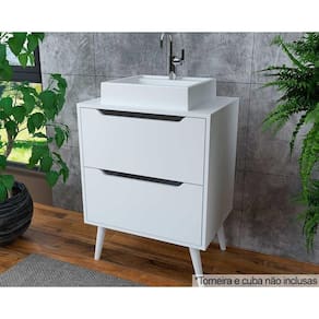 Gabinete de Banheiro c/ Pés BN3639 s/ Cuba c/ 2 Gavetas 60cm Branco - Tecno Mobili