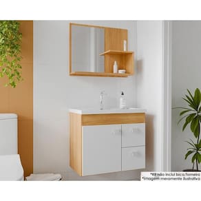 CONJUNTO DE BANHEIRO ISA C/ CUBA + ESPELHO CINAMOMO/BRANCO MGM Marca: MGM