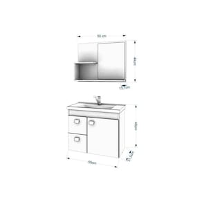 Dimensões(Cm): Conjunto de Banheiro Isa c/ Cuba + Espelho Comprimento(Profundidade): 31,5 cm Largura: 54,45 cm Altura: 46 cm