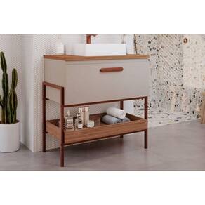 Gabinete de Banheiro Balcão Portinari 1 Porta c/ Cuba 80cm Cappuccino/Freijo - MGM