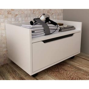 Material de Estrutura - Estrutura em MDP/BP Tipo de Pintura - Pintura em UV (Ultravioleta) Tipo de Acabamento da Pintura - Pintura Semi Brilho Diferenciais do Gabinete - Gabinete com Tampo Vantagens Extra dos Móveis de Banheiro e Lavanderia - Possui Gavetas