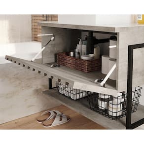 BANHEIRO E LAVANDERIA (BENEFICIOS) Estrutura do Móvel - Metalon - Estrutura em MDF Benefícios do Móvel - Vidro Temperado - Estilo Ripado Material da Cuba - Cuba em Mármore Sintético Diferenciais do Gabinete - Sim