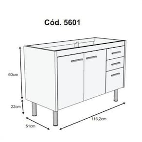 Modelo: Valenza 2 portas 3 gavetas Para tampo de 1,20m Portas e frente de gavetas feitas em MDF *Não companha tampo*