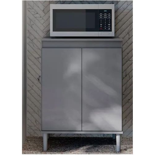Ele dispõe de um amplo tampo, ideal para acomodar micro-ondas, 2 portas, 1 prateleira interna e pés em PVC anti-umidade. O Balcão EJ irá ajudar a manter tudo em seu devido lugar ocupando pouco espaço.