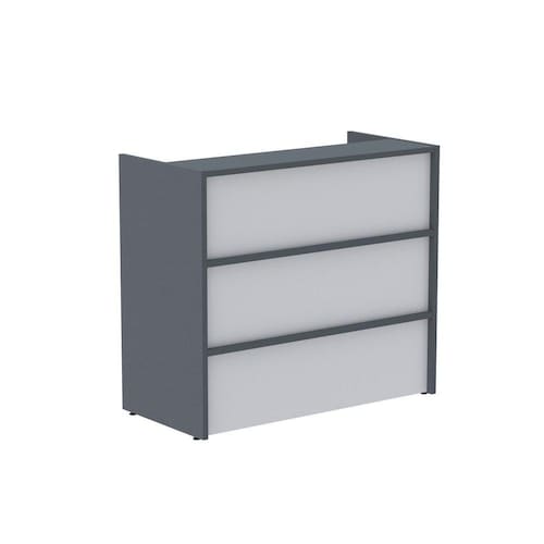 BALCÃO PARA RECEPÇÃO/ATENDIMENTO Tampo e pé MDPBP 25mm com bordas de PVC 2mm Painel frontal MDPBP 25mm com bordas de PVC 2mm e 0,45mm, ideal para recepcionar pacientes em clinicas ou clientes em conveniências. Acabamento da Prateleira: Melamínico Acabamento dos Pés: Polipropileno Altura: 110 cm Altura dos Pés: 3 cm Ambiente Principal: Escritório codigo_ean: 7909903371763 Complexidade da Montagem: Média: pode ser montado por mais de uma pessoa e/ou necessite de maior conhecimento para montagem Cor: Grafito/Branco Cor do Produto: Grafito/Branco Cor Interna: Grafito/Branco Cor Predominante: Branco Escala de Brilho: Semi-Fosco Escala de Brilho da Prateleira: Semi-Fosco Estilo: Clássico Largura: 125 cm Linha ou Coleção: P25 Manual de Especificação Técnica: https://product-hub-prd.madeiramadeira.com.br/861791/documents/7b47c491-1699-4187-a56b-829db7b18e541401772balcaodeatendimento.pdf Manual de Montagem e Instalação: https://product-hub-prd.madeiramadeira.com.br/861791/documents/f9c6d6ac-e539-4fba-9759-76026752ae85wuspsharing.view3Fusp3Dsharing Material da Prateleira: MDP Possui Gavetas: Não Profundidade: 60 cm Suporta Até (kg): 30 kg Ean: 7909903371763