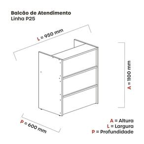 BALCÃO PARA RECEPÇÃO/ATENDIMENTO Tampo e pé MDPBP 25mm com bordas de PVC 2mm Painel frontal MDPBP 25mm com bordas de PVC 2mm e 0,45mm, ideal para recepcionar pacientes em clinicas ou clientes em conveniências. Acabamento da Prateleira: Melamínico Acabamento dos Pés: Polipropileno Altura: 110 cm Altura dos Pés: 3 cm Ambiente Principal: Escritório codigo_ean: 7909903371367 Complexidade da Montagem: Média: pode ser montado por mais de uma pessoa e/ou necessite de maior conhecimento para montagem Cor: Noce Marromle/Branco Cor do Produto: Noce Marromle/Branco Cor Interna: Noce Marromle/Branco Cor Predominante: Branco Escala de Brilho: Semi-Fosco Escala de Brilho da Prateleira: Semi-Fosco Estilo: Clássico Largura: 95 cm Linha ou Coleção: P25 Manual de Especificação Técnica: https://product-hub-prd.madeiramadeira.com.br/652525/documents/610a724c-ed95-4dea-ba82-9cbe75f59640438107balcaodeatendimento1.pdf Manual de Montagem e Instalação: https://product-hub-prd.madeiramadeira.com.br/652525/documents/703749b2-0d08-4873-be9f-5856991dfab9wuspsharing.view3Fusp3Dsharing Material da Prateleira: MDP Possui Gavetas: Não Profundidade: 60 cm Suporta Até (kg): 30 kg Ean: 7909903371367