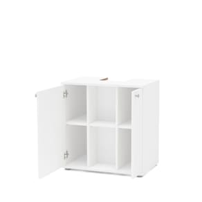 Características: Estrutura MDP Pintura UV 02 Portas com dobradiças metálicas Puxadores de Plástico Peso suportado na Prateleiras: 5kg