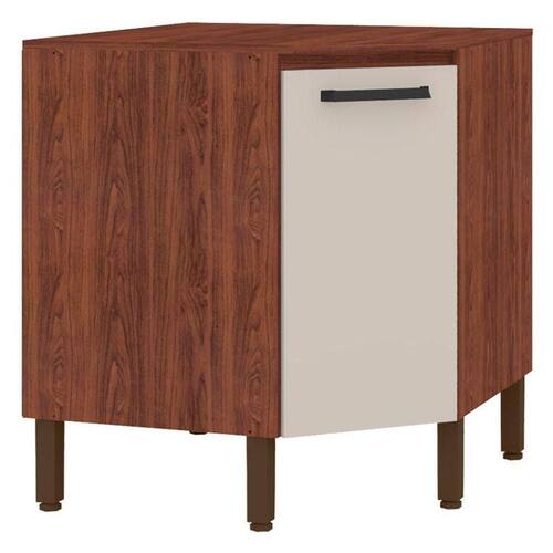 Balcão Para Canto Oblíquo com Tampo Ametista Nogueira Off White - Kits Paraná