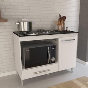 O balcão para cooktop e forno de 105 cm reúne características decorativas, delicadas e práticas em seu design, possibilitando a montagem em diversos ambientes.