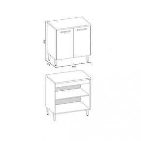 Características: Estrutura em MDP 2 Portas Pés reguláveis Tampo com pré corte para cooktop 4 e 5 bocas