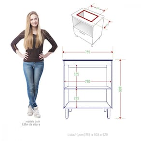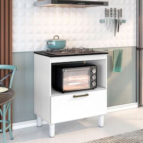 - 100 MDP de 15 mm - Espaço cooktop: 510x320 (Não acompanha cooktop - Imagem ilustrativa) - Espaço forno: 720x355 (Não acompanha forno - Imagem ilustrativa) - 1 Porta com Dobradiça metálica e articulador - Puxador de plástico - 04 Pés de plástico com regulagem - Acabamento/Pintura Texturizado UV Verniz fosco/brilho - Suporte de peso 18 kg - Necessita de Montagem (Acompanha Manual) - Garantia 03 meses