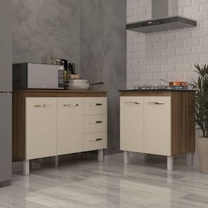 Balcão Para Cooktop 4 Bocas Fran E Armário Bruna 118 Cm Cozinha Gabinete Savana Off White Com Tampo Tampão Savana Este kit combina praticidade e estilo, perfeito para otimizar seu espaço! Inclui um balcão Bruna de 120 cm com tampo, ideal para preparo de alimentos e refeições, e um balcão Fran para cooktop de 4 bocas, projetado para instalação segura e organizada do seu cooktop. Com design moderno, materiais duráveis e acabamento sofisticado, este kit oferece funcionalidade e elegância, transformando sua cozinha em um ambiente mais prático e aconchegante. Características do Balcão: