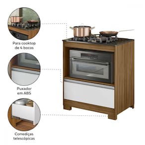ATENÇÃO: * Fotos meramente ilustrativas, demais itens apenas decorativos. * Tampo já vem cortado com espaço para o cooktop de 4 bocas. * Cooktop e forno não acompanham balcão. MODELO: 3110