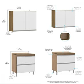Dimensões do Armário Aéreo: Altura: 60 cm Largura: 80 cm Profundidade: 31,5 cm Peso: 16 kg