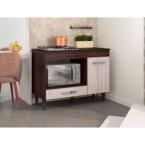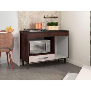 Balcão Para Cooktop 5 Bocas e Forno Microondas Carla - Marrom Cacau