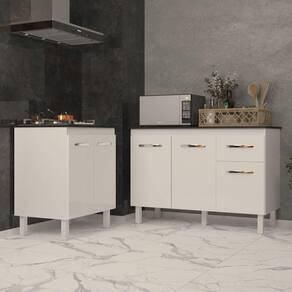 Balcão Para Cooktop 5 Bocas Fran Branco E Armário Aline 118 Cm Cozinha Gabinete Branco Com Tampo Tampão Preto Transforme sua cozinha com este Kit, que une funcionalidade e design! Inclui um balcão Aline de 120 cm com tampo, perfeito para preparo de alimentos e refeições, e um balcão Fran para cooktop de 5 bocas, projetado para instalação segura e organizada. Com materiais de alta durabilidade e acabamento sofisticado, este kit é ideal para quem busca otimizar o espaço com estilo. Modernize sua cozinha com um produto que combina praticidade, qualidade e design! Garanta já o seu e aproveite a comodidade que sua cozinha merece! Características do Balcão: