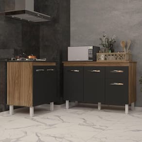 Balcão Para Cooktop 5 Bocas Fran E Armário Aline 118 Cm Cozinha Gabinete Savana Preto Com Tampo Tampão Savana Transforme sua cozinha com este Kit, que une funcionalidade e design! Inclui um balcão Aline de 120 cm com tampo, perfeito para preparo de alimentos e refeições, e um balcão Fran para cooktop de 5 bocas, projetado para instalação segura e organizada. Com materiais de alta durabilidade e acabamento sofisticado, este kit é ideal para quem busca otimizar o espaço com estilo. Modernize sua cozinha com um produto que combina praticidade, qualidade e design! Garanta já o seu e aproveite a comodidade que sua cozinha merece! Características do Balcão: