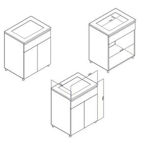 O Balcão para cooktop, ASM 186, Possui sua estrutura em MDP 15mm, costa 3mm, Com recorte para cooktop de 4 bocas e marcação para 5 bocas.