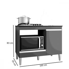 - Estrutura em MDP - Pintura em UV Fosco - 1 Porta com Dobradicas Metalicas - 1 Gaveta com Corredicas Metalicas - Puxadores em PVC - Indicado para Fogao Cooktop de 4 ou 5 bocas - Tampo marcado para recorte e devera ser recortado para usar Cooktop - Nicho para Forno ou Microondas - Espaco interno para Butijao de gas - Pes em PVC com Regulagem de altura - Produzida com materiais de qualidade