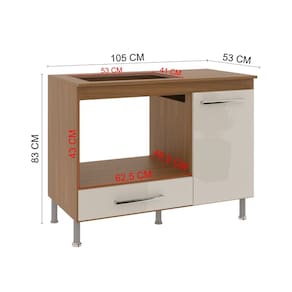 Especificações técnicas: Estrutura em MDP Pintura ultravioleta 1 Porta 1 Gaveta Espaço para o cooktop: 36 cm x 54 cm