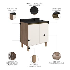 Um Balcão para Cooktop Com Tampo 80cm Maly N03 Carvalho/Off White, da Mpozenato em MDF de 15mm com acabamento em pintura UV representa uma opção elegante e prática para uma Cozinha Moderna.