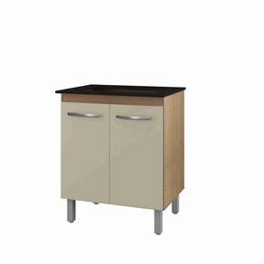 O balcão conta com duas portas que proporcionam amplo espaço de armazenamento, ideal para utensílios e ingredientes. As corrediças em metal asseguram um funcionamento suave e eficiente, tornando o acesso aos seus itens mais prático.