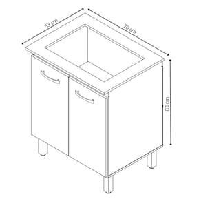 Fabricado em MDP, o corpo do balcão garante durabilidade e resistência. Com dimensões de 70 cm de largura, 53 cm de profundidade e 84 cm de altura, ele se adapta facilmente a diferentes espaços, otimizando a área da sua cozinha.
