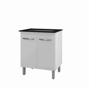 O balcão conta com duas portas que proporcionam amplo espaço de armazenamento, ideal para utensílios e ingredientes. As corrediças em metal asseguram um funcionamento suave e eficiente, tornando o acesso aos seus itens mais prático.