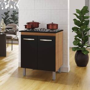 O balcão conta com duas portas que proporcionam amplo espaço de armazenamento, ideal para utensílios e ingredientes. As corrediças em metal asseguram um funcionamento suave e eficiente, tornando o acesso aos seus itens mais prático.