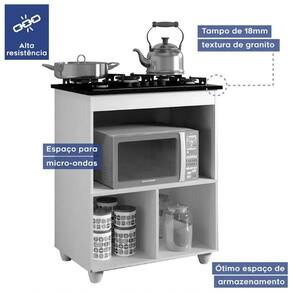 Na hora de preparar as refeições da família, é sempre bom contar com móveis que ajudem a organizar aqueles itens pertinentes à rotina. O Balcão Salvia é uma ótima forma de reforçar paneleiros e armários aéreos já que recebe utensílios gerais, alimentos secos e até frutas no inferior, além de ter apoio para receber um micro-ondas e cooktop. O visual e a cor também são leves e básicos, harmoniza bem com os o restante do mobiliário - tudo pra deixar seu cantinho com uma cara ainda mais convidativa!Especificações do Produto Montado