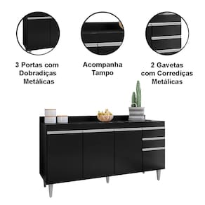 Características do Balcão 160 cm 4 Portas com Tampo: