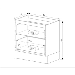 Peso Recomendado (por Tampo/prateleira/gaveta): 8 Kg