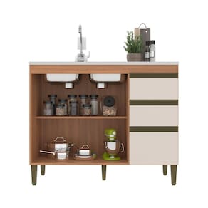 Balcão de Pia 3 gavetas Cecília 120 cm e 2 portas de bater, produto indispensável para sua cozinha, resistente e durador, toda estrutura em MPD 15 mm seu designer é tradicional puxadores de perfil em plástico na cor bronze combinando com os pés, suas portas possuem dobradiças metálicas trazendo mais resistência e durabilidade ao passar do tempo, suas 3 gavetas suportam até 7 kg de peso com corrediças metálicas seu interior possuem um prateleira podendo suportar até 20 kg. Produto completamente fácil de montar Suporta Granito: Sim Acabamento da Prateleira: Finish Foil Escala de Brilho da Prateleira: Fosco Acabamento da Gaveta: Finish Foil Escala de Brilho da Gaveta: Fosco Acabamento da Porta: Finish Foil Escala de Brilho da Porta: Fosco Produto Montado: Sim Acabamento: Finish Foil Acabamento dos Pés: Polipropileno Acompanha Tampo: Não Altura dos Pés: 17 cm Ambiente Principal: Cozinha Balcão Acompanha Pia: Não Cesto para Frutas: Não codigo_ean: 7909903384947 Complexidade da Montagem: Baixa: pode ser montado por uma pessoa sozinha Cor: Freijó/Off White Cor do Produto: Freijó/Off white Cor Flex: Não Cor Interna: Marrom Escala de Brilho: Fosco Espessura do Material da Estrutura: 15 mm Gaveta com Chave: Não Itens Inclusos: 1 Balcão, kit ferragens e manual de montagem Linha ou Coleção: 2023 Manual de Especificação Técnica: https://product-hub-prd.madeiramadeira.com.br/865366/documents/0e0cbb3a-6371-4120-98c4-20c14b64cdb8lcAopia120cmcozinhacecIlia.pdf Manual de Montagem e Instalação: https://product-hub-prd.madeiramadeira.com.br/865366/documents/c9f57ea2-32b6-4459-9bab-5dbc1b08f3ed69316681balcaodepiacecilia.pdf Material da Dobradiça/Corrediça da Porta: Metálica Material da Gaveta: MDP Material da Porta: MDP Material da Prateleira: MDP Material dos Pés: Plástico modular: Sim Montagem Flex: Não Necessita Montagem: Sim O Balcão Acompanha Pia: Não Origem do Produto: Nacional Pés Reguláveis: Sim Peso: 34,6 kg Peso Máximo por Gaveta: 7 kg Peso Máximo por Prateleira: 20 kg Possui Pés: 05 Possui Portas: Sim Possui recorte para Cooktop: Não Recomendações de Uso, Manutenção e Limpeza: Flanela umedecida Sapatas Niveladoras: Sim Sistema de Montagem: Parafusos Suporta Até (kg): 25 kg Tamanho Indicado do Tampo (L x P): 123x53 Tipo de Corrediça da Gaveta: Simples Tipo de Dobradiça/Corrediça da Porta: Simples Tipo de Porta: Bater Tipo de Puxador da Gaveta: Embutido Tipo de Puxador da Porta: Embutido Ean: 7909903384947