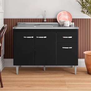 O Balcão possui um perfeito design moderno, compartimento com amplo espaço interno para acomodar utensílios, panelas, eletrodomésticos pequenos e muito mais.