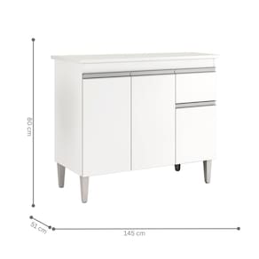 O Balcão possui um perfeito design moderno, compartimento com amplo espaço interno para acomodar utensílios, panelas, eletrodomésticos pequenos e muito mais.