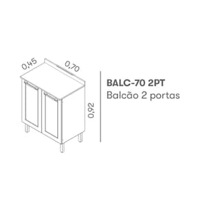 O Balcão de cozinha Itatiaia Florença, é ideal para deixar sua cozinha ainda mais especial, pois tem um design inovador e multifuncional. Possui resistentes puxadores em ABS com Acabamento Metalizado ônix e pés com sapata regulável proporcionado marromhor nivelamento com o piso, estabilidade e resistência. Uma combinação perfeita para sua casa. O Tampo é em MDP BP de 15mm na cor Nero Marquina, seu acabamento é em BP resistente a altas temperaturas (até 120º), mais funcionalidade e conforto no preparo das suas receitas. Pintra eletrostática a pó . Suporta Granito: Sim Acabamento da Prateleira: Pintura Escala de Brilho da Prateleira: Semi-Brilho Acabamento da Porta: Pintura Escala de Brilho da Porta: Semi-Brilho Material do Puxador da Porta: ABS Acabamento: Pintura Acabamento dos Pés: Plástico Acompanha Tampo: Sim Altura dos Pés: 16 cm Ambiente Principal: Cozinha Balcão Acompanha Pia: Não Complexidade da Montagem: Média: pode ser montado por mais de uma pessoa e/ou necessite de maior conhecimento para montagem Cor: Grafite/Branco Cor do Produto: Grafite/Branco Cor Interna: Branco Escala de Brilho: Semi-Brilho Itens Inclusos: 1 Balcão com tampo, Manual de Montagem Linha ou Coleção: Frorença Manual de Montagem e Instalação: https://cdn2.madeiramadeira.com.br/atributo/itatiaia-aco/1199604-1000013829-manual-mont-balc-70-2pt-florenca.pdf Material da Porta: Aço Material da Prateleira: Aço Material do Tampo: MDP Material dos Pés: Polipropileno Medida do Tampo (L x C x E): 45x70x1,5cm Necessita Montagem: Sim Origem do Produto: Nacional Pés Reguláveis: Sim Peso: 15 kg Peso Máximo por Gaveta: kg Peso Máximo por Prateleira: 30 kg Possui Pés: 04 Possui Portas: 02 Possui recorte para Cooktop: Não Recomendações de Uso, Manutenção e Limpeza: Pano Umedecido Sapatas Niveladoras: Sim Sistema de Montagem: Parafutilizado Suporta Até (kg): 50 kg Tipo de Dobradiça/Corrediça da Porta: Simples Tipo de Porta: Bater Tipo de Puxador da Porta: Externo